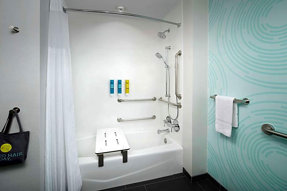 Inside, extra-long beds, free toiletries, and a bathtub add everyday comforts. The property is non-smoking, and guest amenities include access to the pool and a well-equipped lobby area for relaxed downtime after a day on the road or exploring the city.